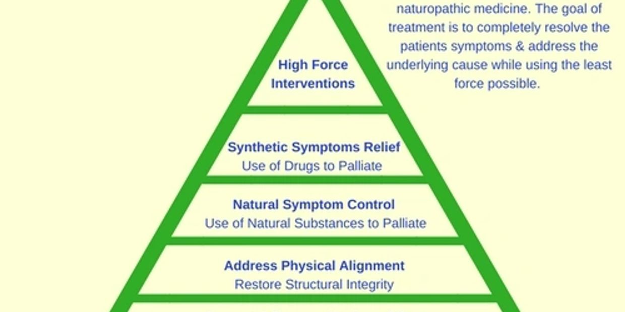 Also known as the hierarchy of healing, this is the unifying theory of Naturopathic Medicine. This hierarchy governs naturopathic clinic decision-making. It begins by offering minimally invasive recommendations, such as nutrition, hydration, exercise, & sleep, and ends with more aggressive, invasive modalities.